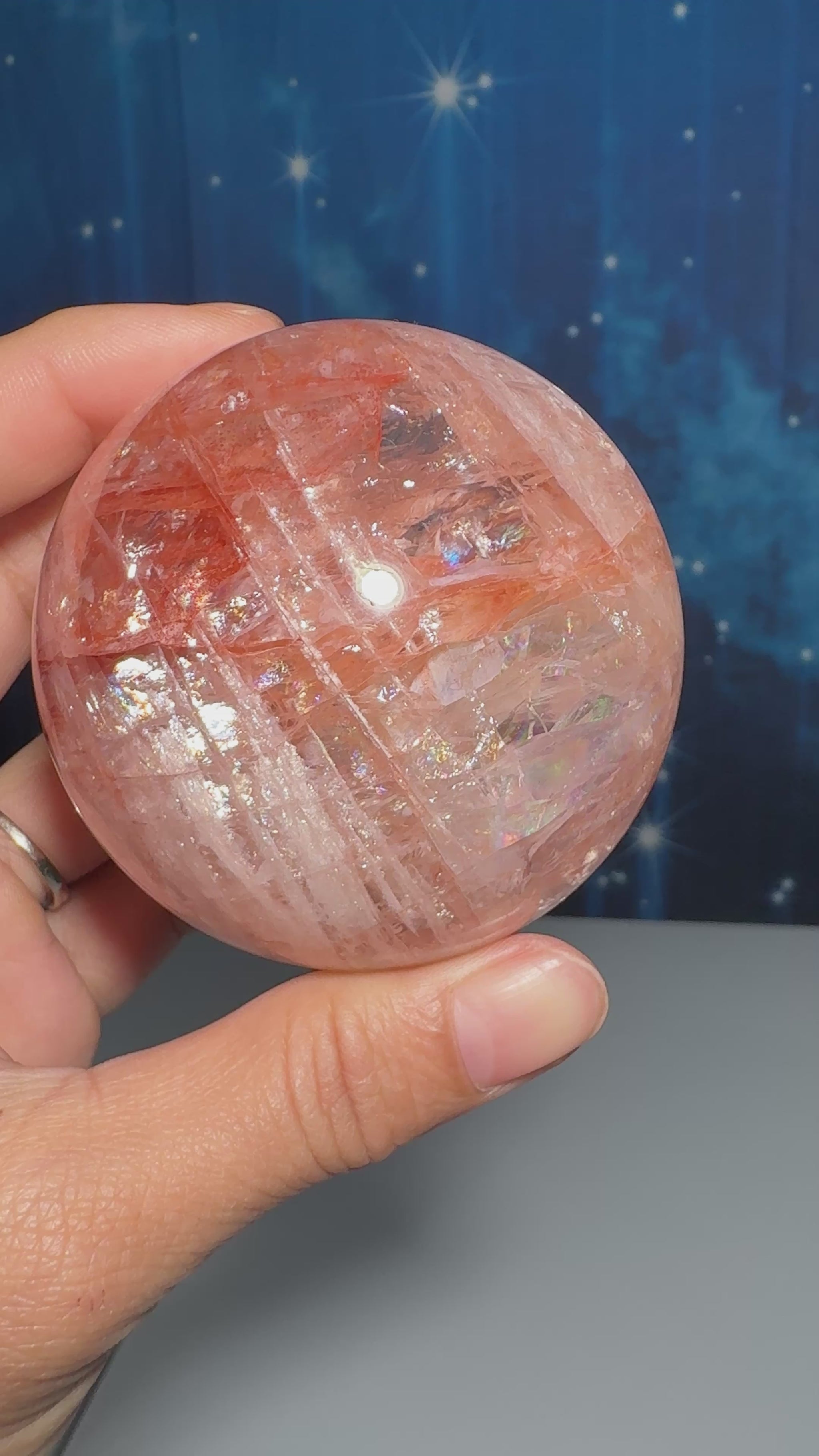 Fire Quartz sphere | Hematoid sphere | Rainbow filled