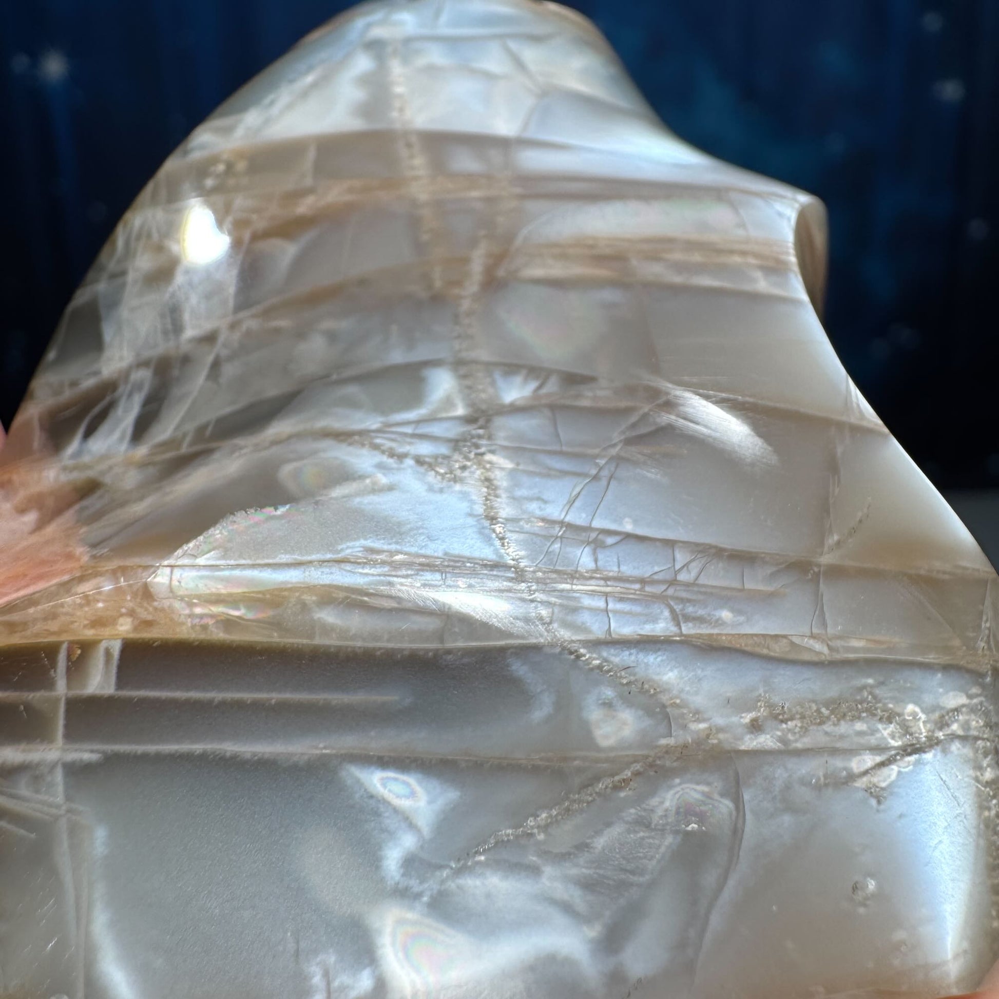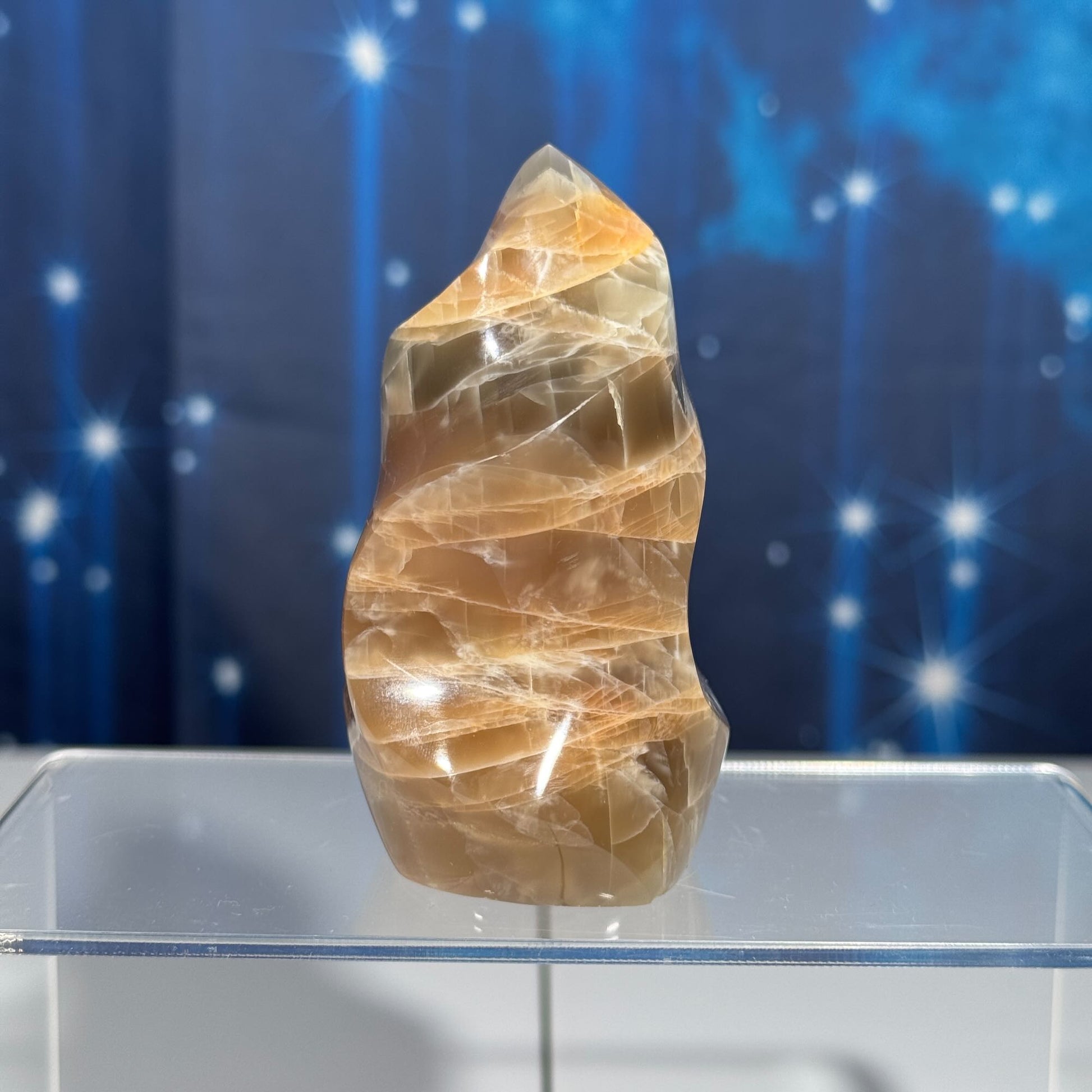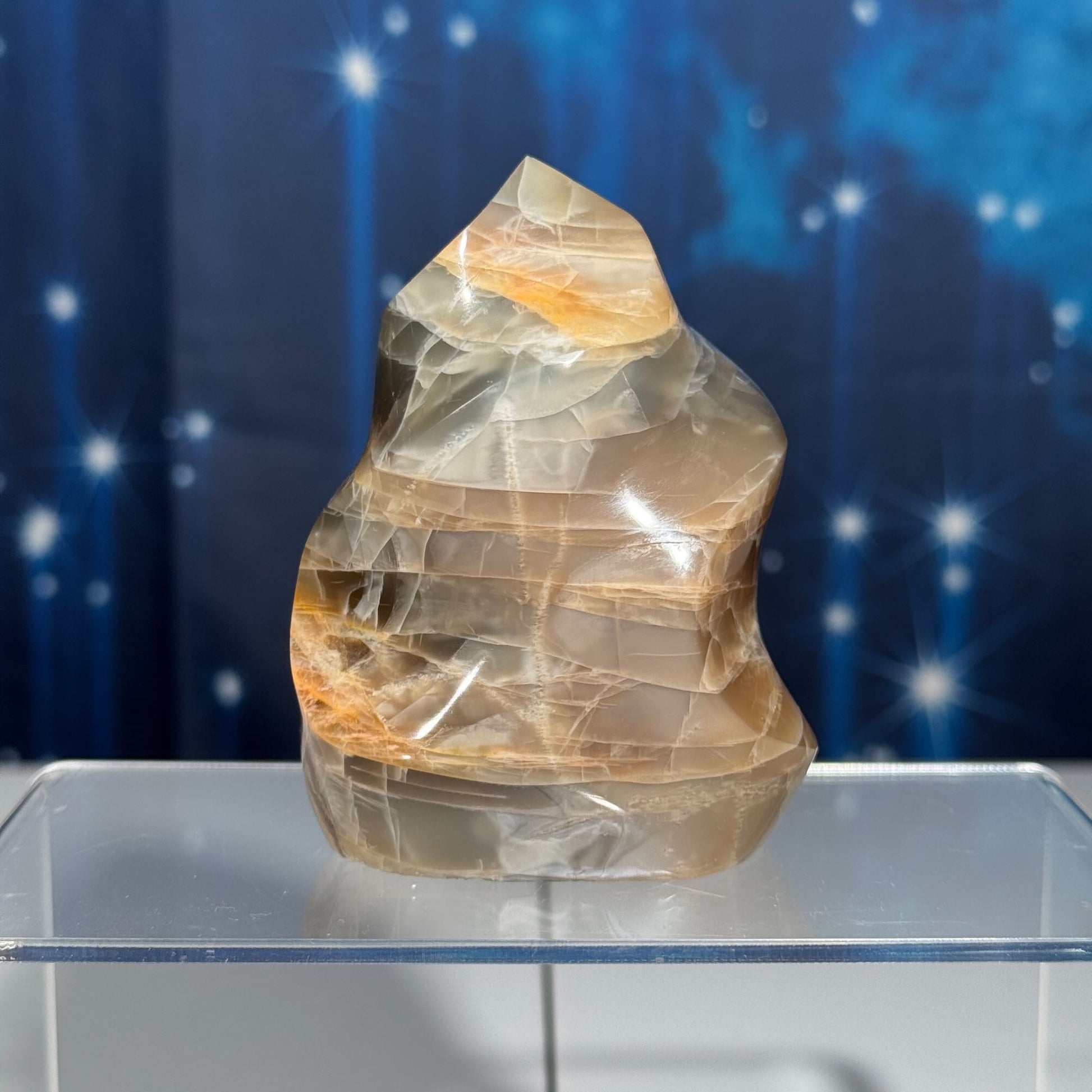 flashy Black and Peach Moonstone flame