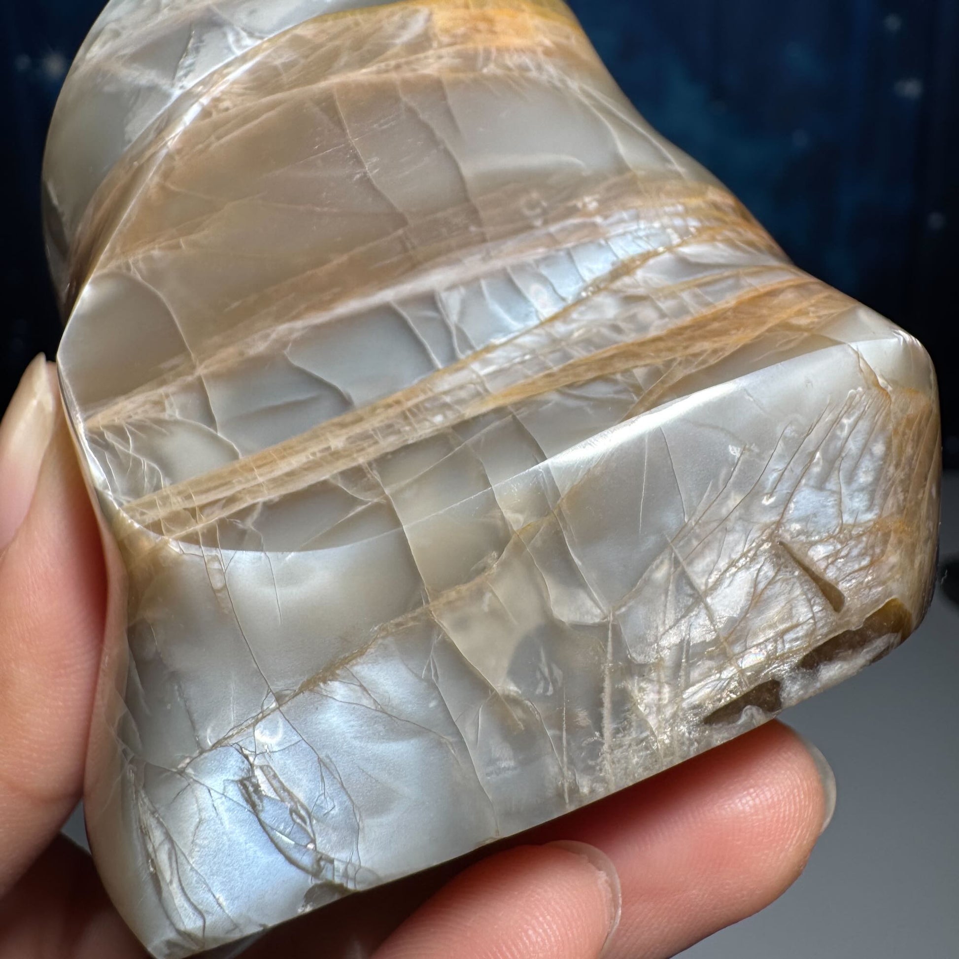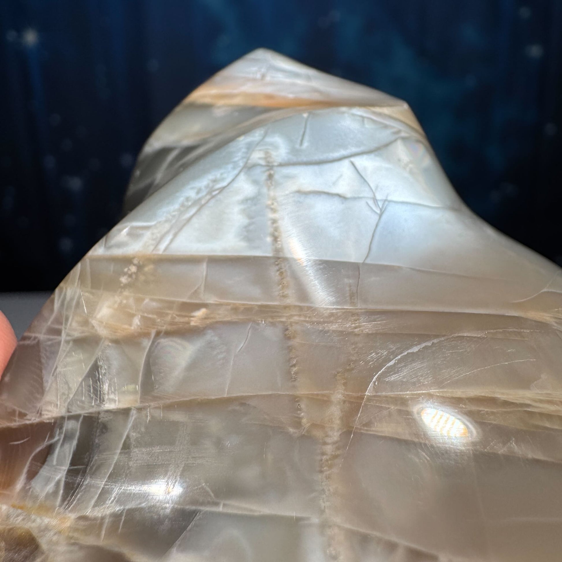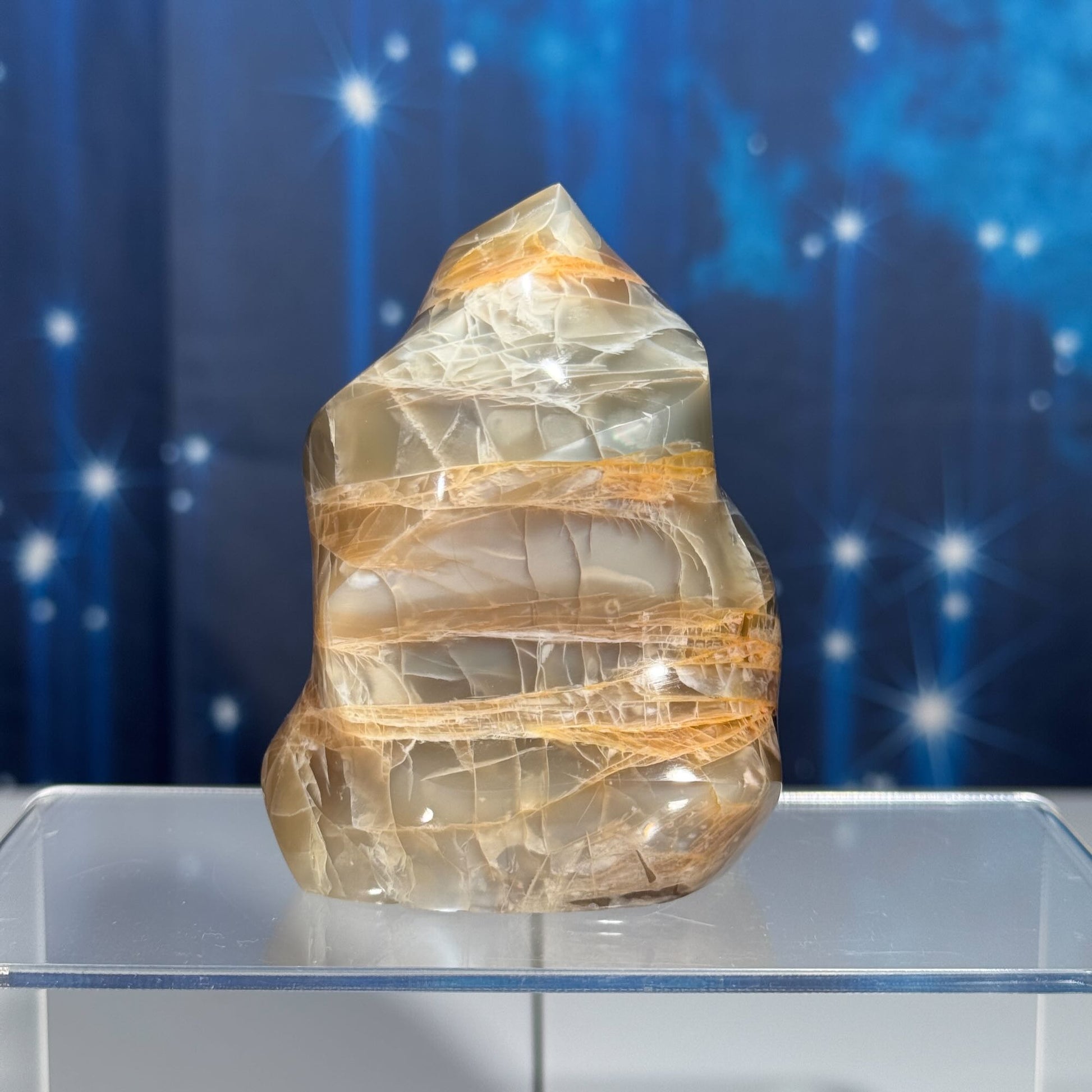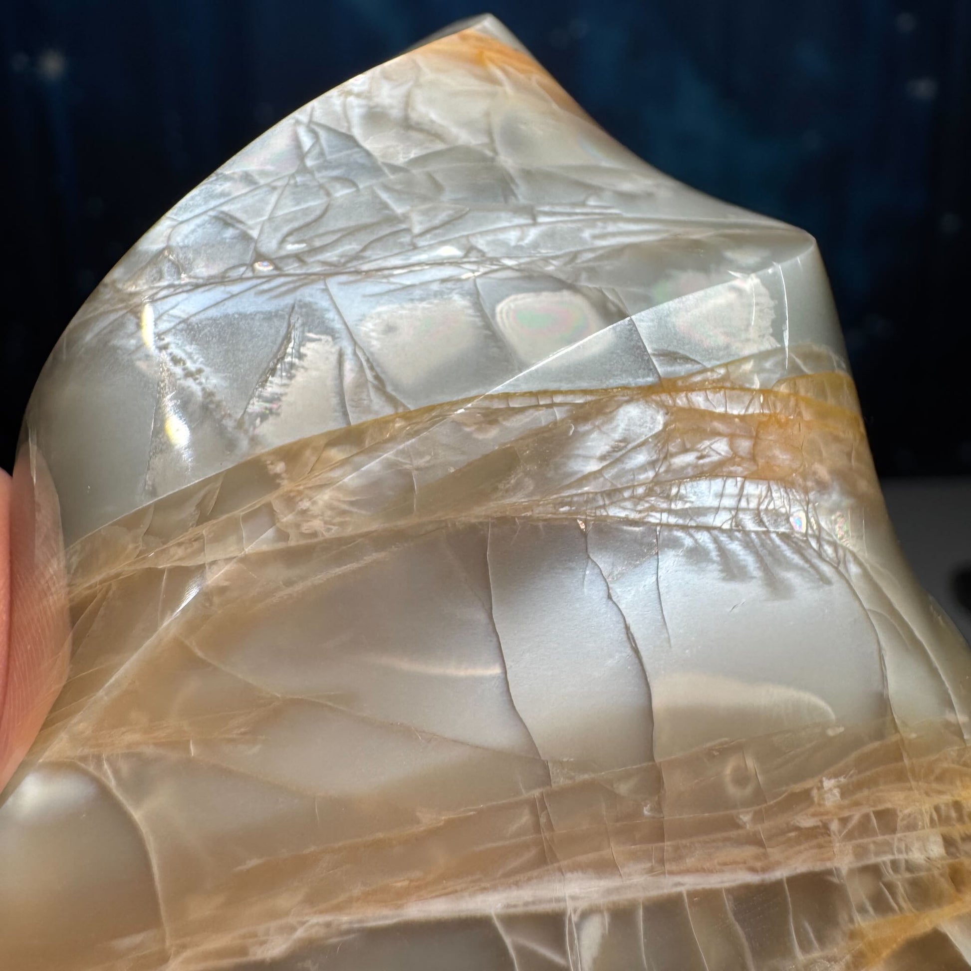 flashy Black and Peach Moonstone flame