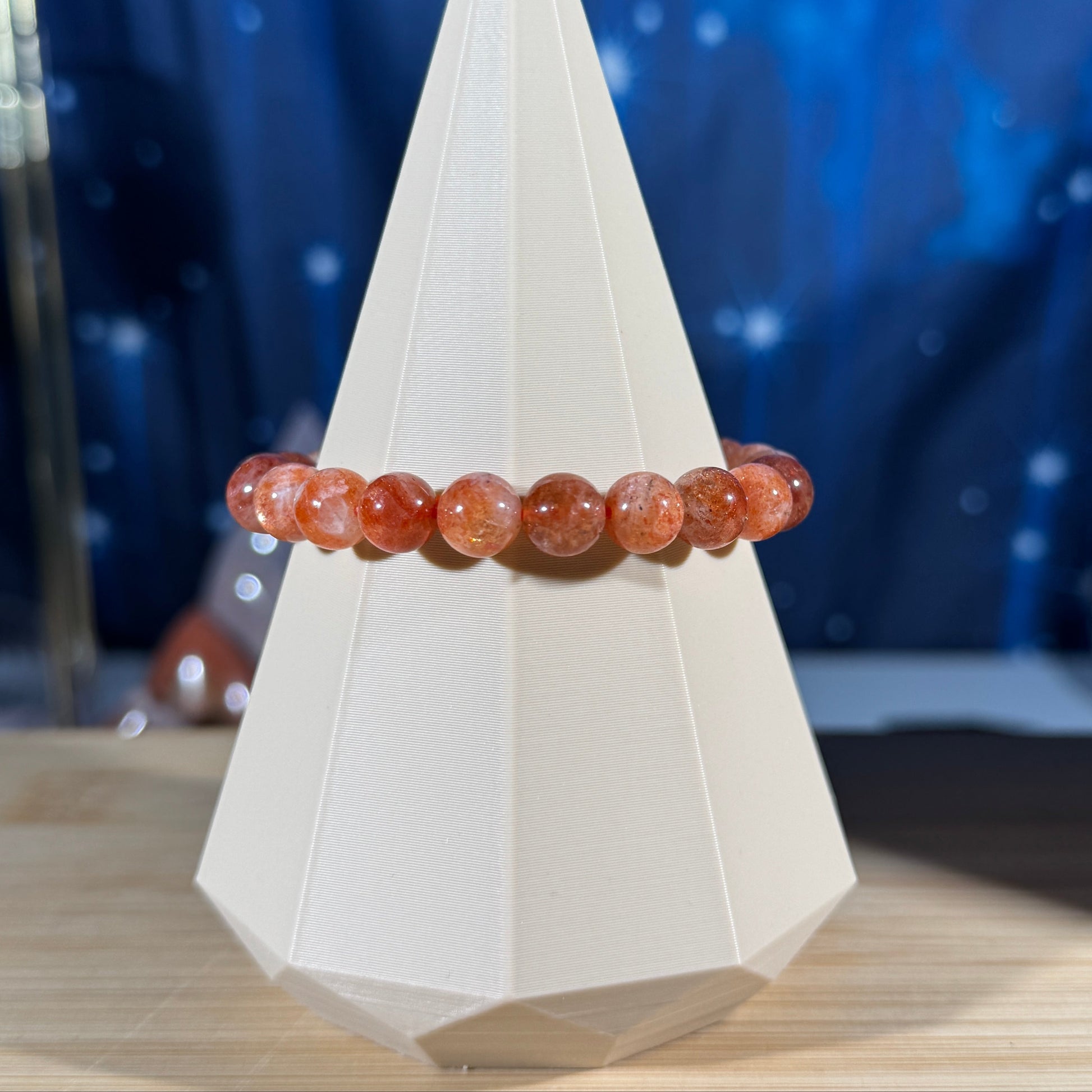 One (1) Sunstone bracelet - 8mm beads - fits 6.5" wrist - super flashy