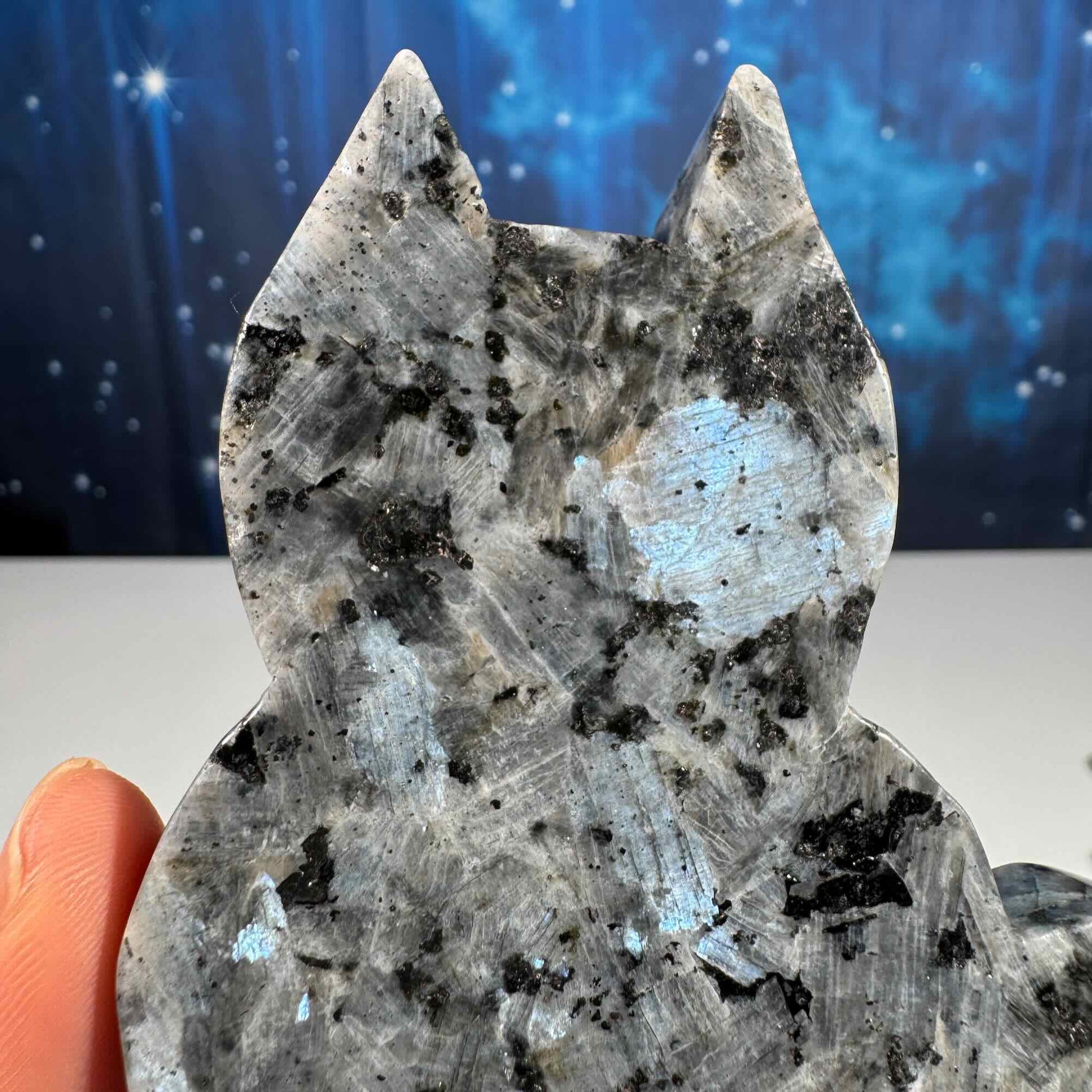 Larvikite cat carving