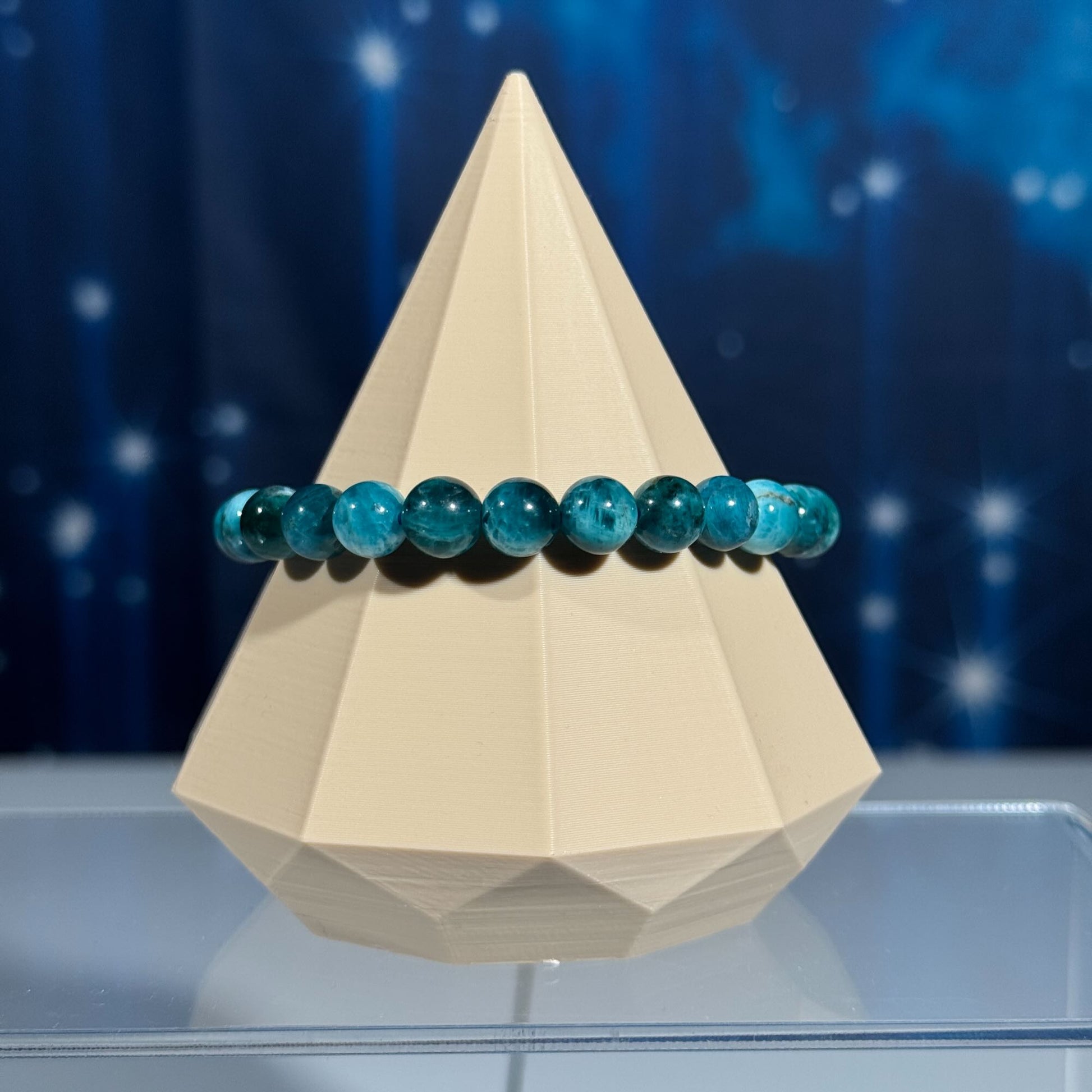 One (1) Blue Apatite bracelet – stretchy 7mm beads