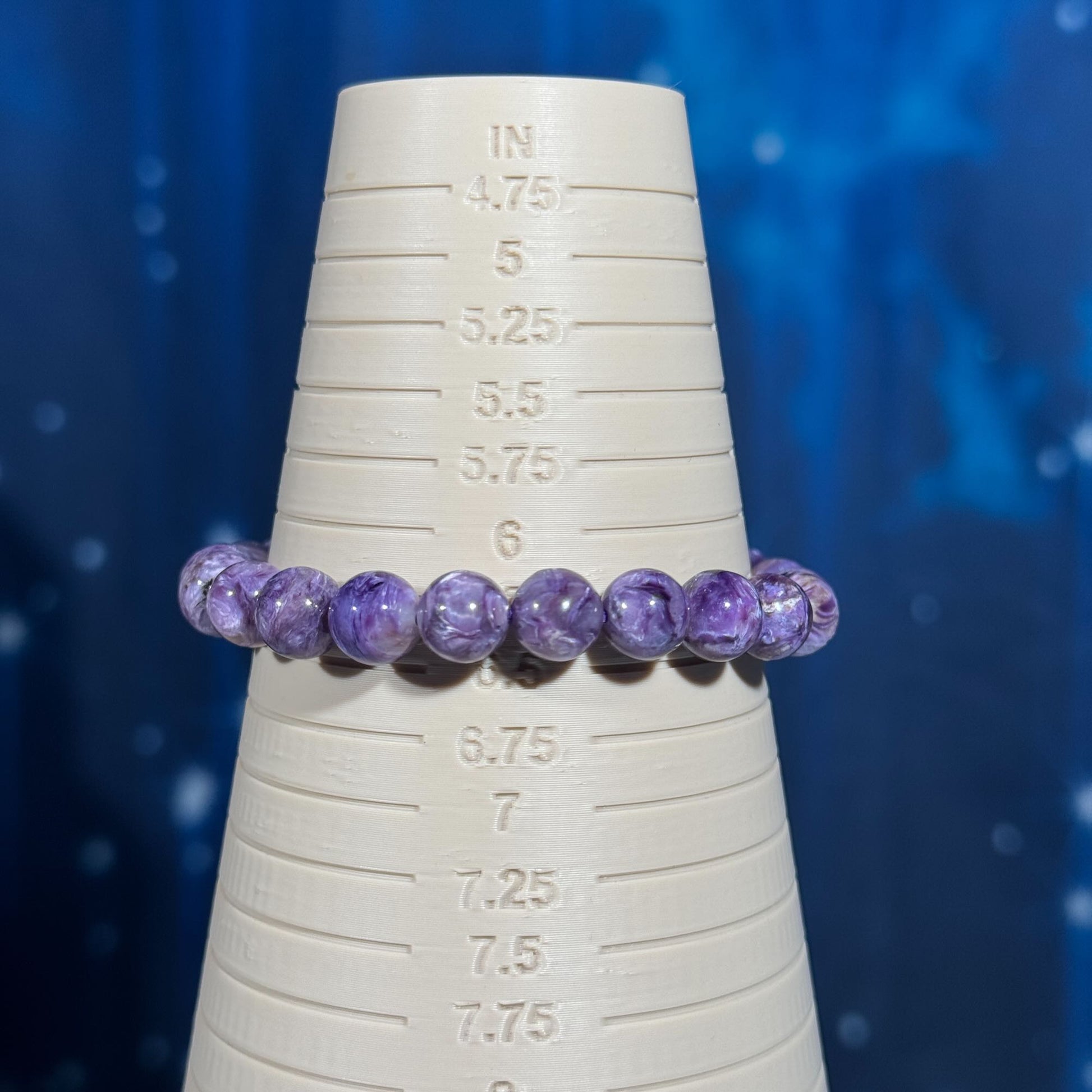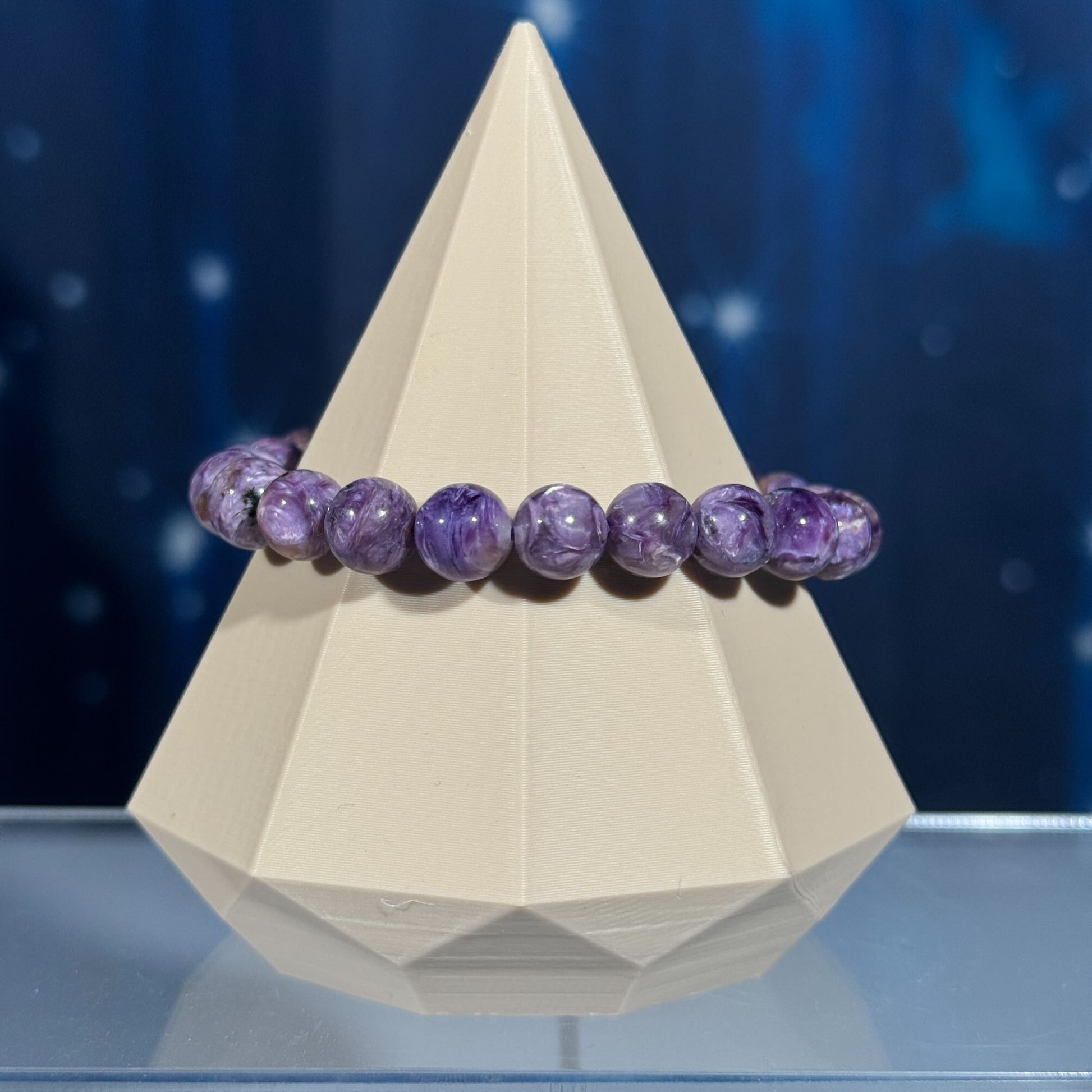 One (1) Charoite bracelet | stretchy | 8mm beads | Flashy
