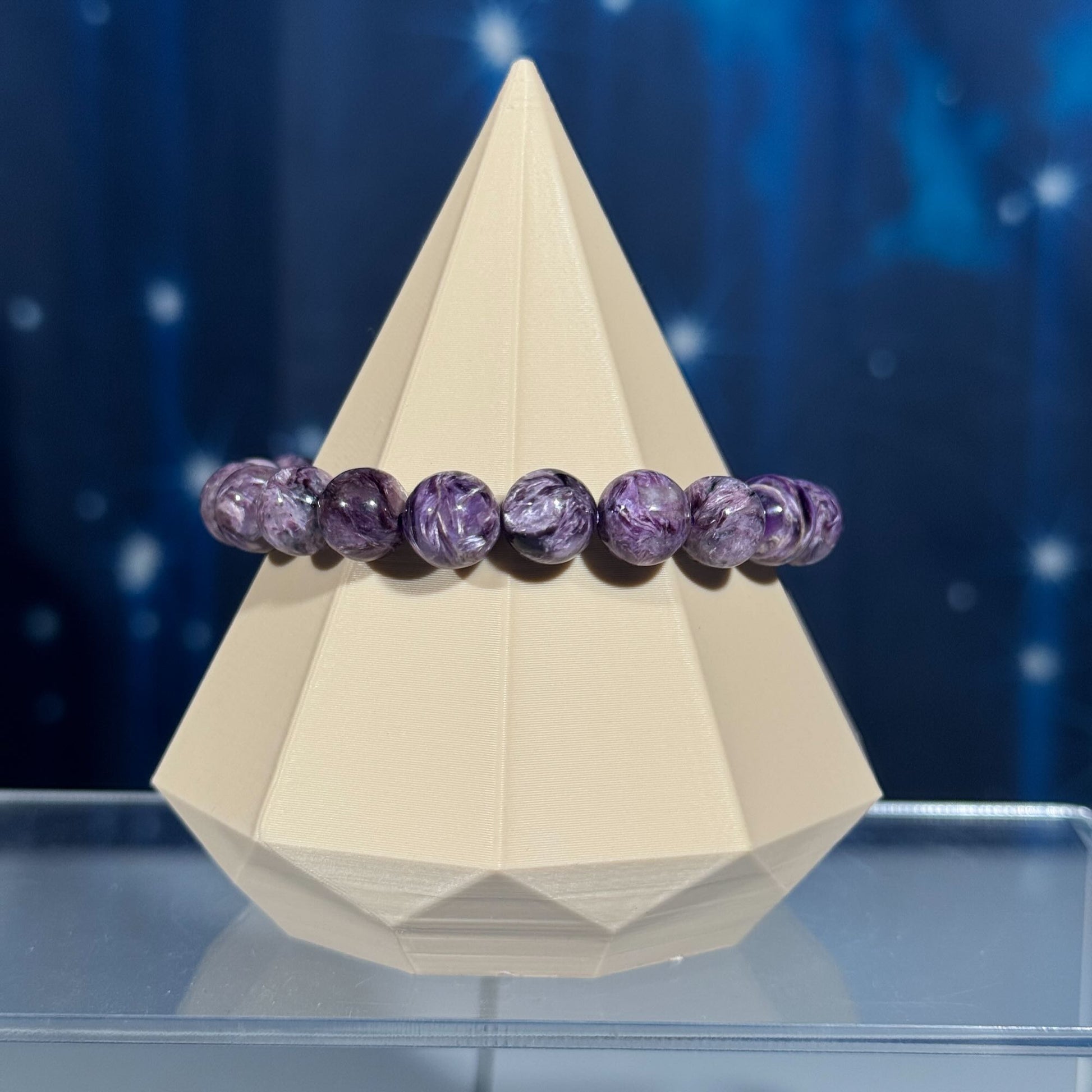 One (1) Charoite bracelet | stretchy | 9mm beads | Flashy