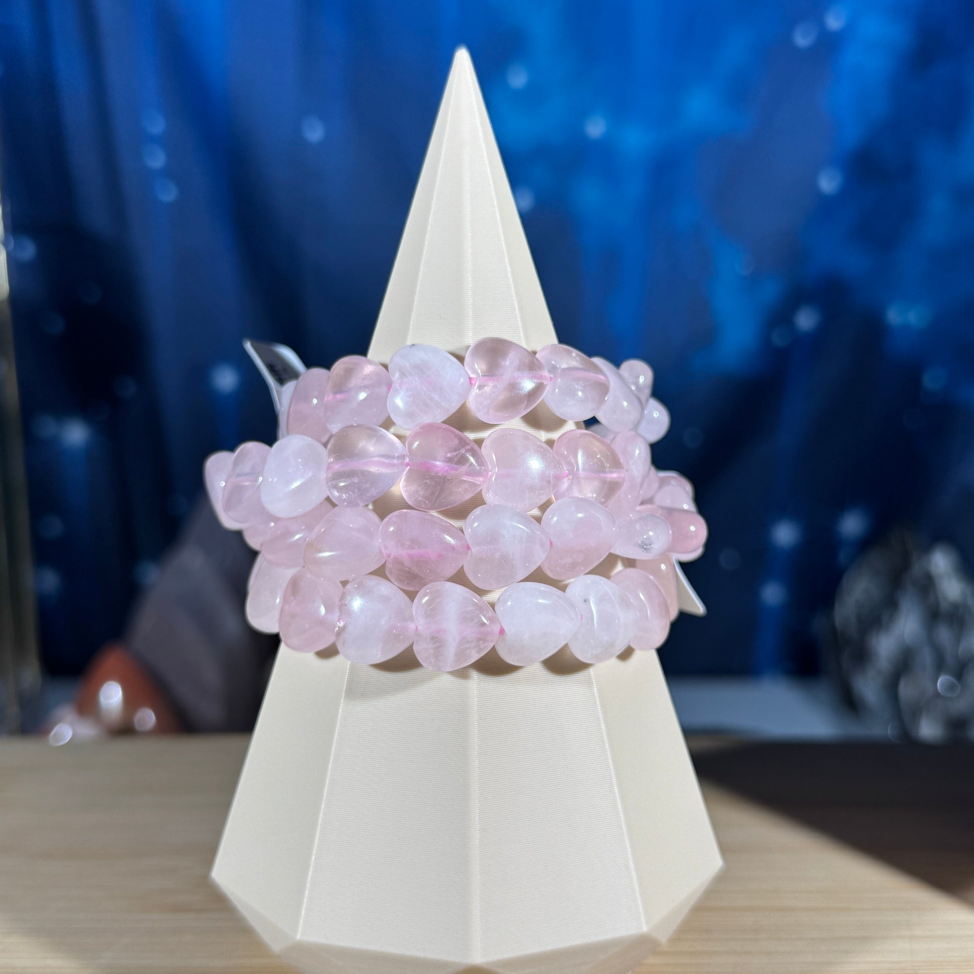 One (1) Rose Quartz heart bracelet - 12mm bead length - fits 6.5" wrist