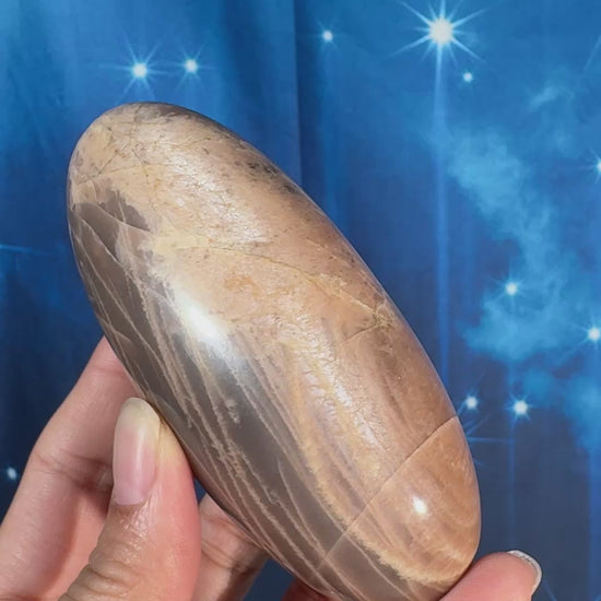 Peach moonstone with sunstone lingam - 4" × 1 3/4" × 1 3/4" - 9.9 oz